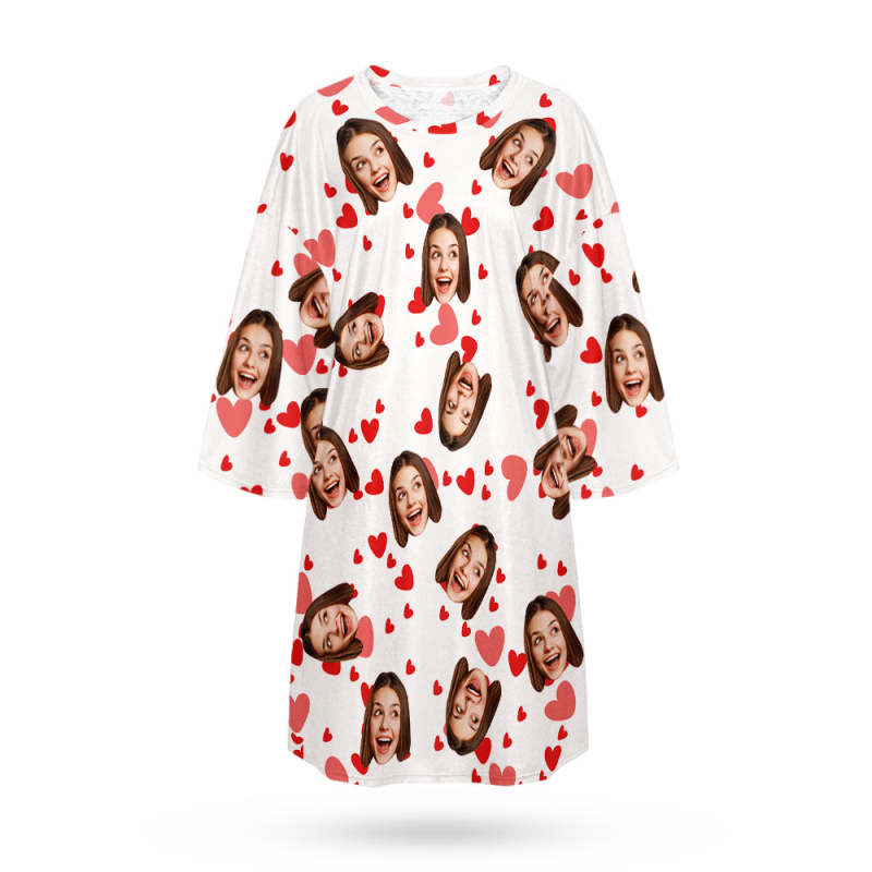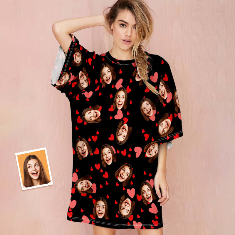 Chemise De Nuit Visage Personnalisée Photo Personnalisée Chemise De Nuit Surdimensionnée Pour Femmes Cadeaux Coeur Rouge Pour Elle
