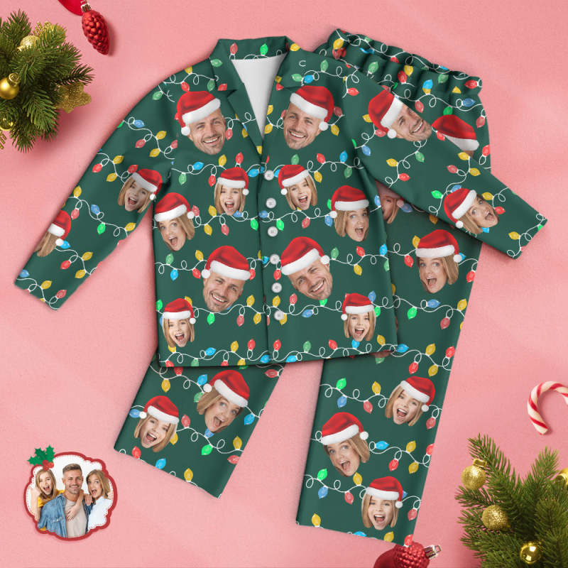 Pyjama Visage Personnalisé Photo Personnalisée Noël Famille Noël Led Pyjamas