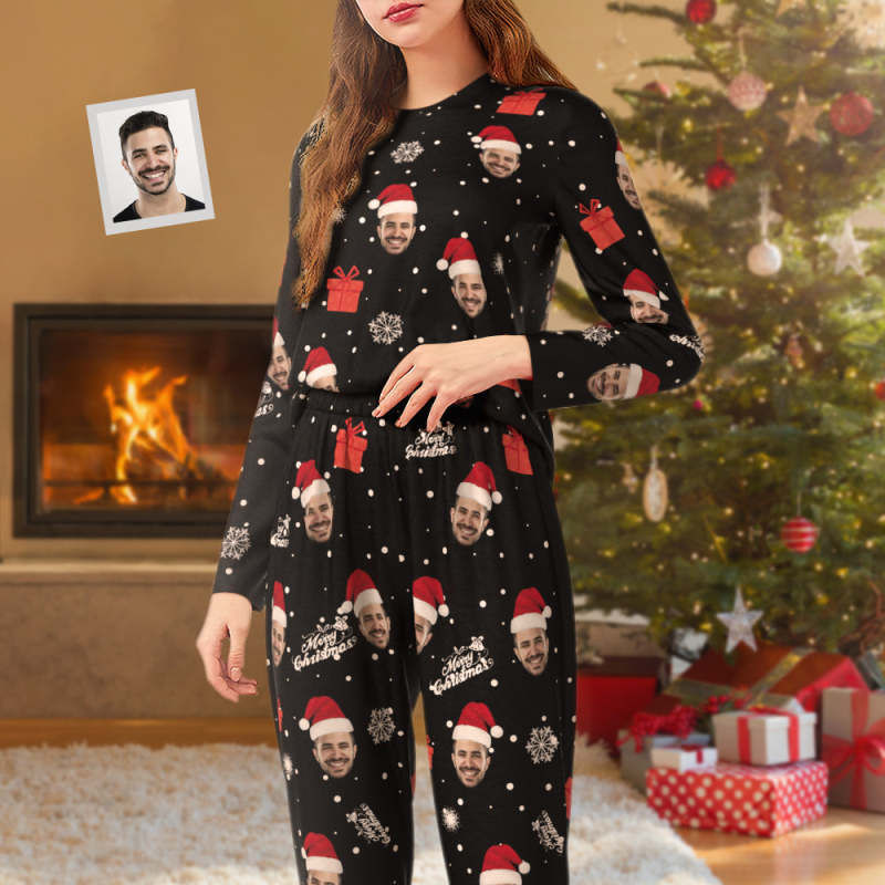 Pyjama Facial Personnalisé Pyjama Féminin Long Cou Rond Personnalisé - Père Noël
