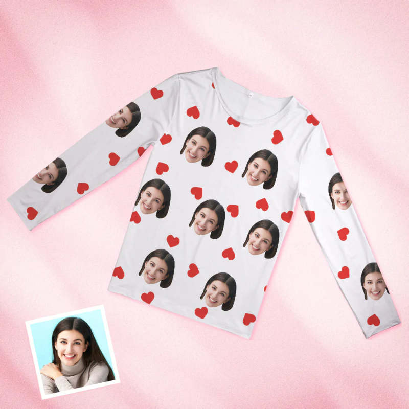 Personnalisé Visage Pyjama Personnalisé Col Rond Amour Femme Coeur Rouge Pyjama Valentine Cadeau