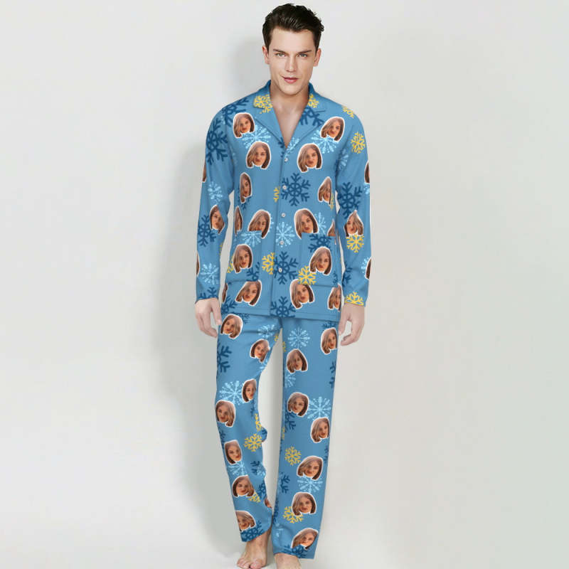 Pyjama Visage Personnalisé Vêtements De Nuit Photo Personnalisée Pyjama Bleu Cadeau Flocon De Neige Pour Les Amis