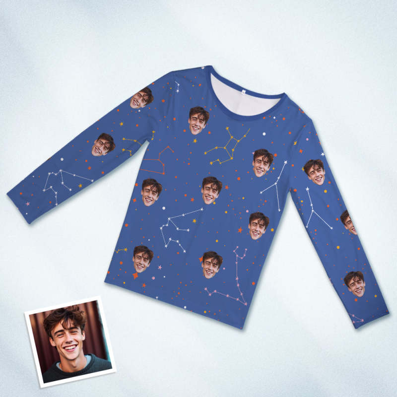 Pyjama Visage Personnalisé Vêtements De Nuit Pyjama Col Rond Personnalisé Constellation D'étoiles Pour Femmes Et Hommes