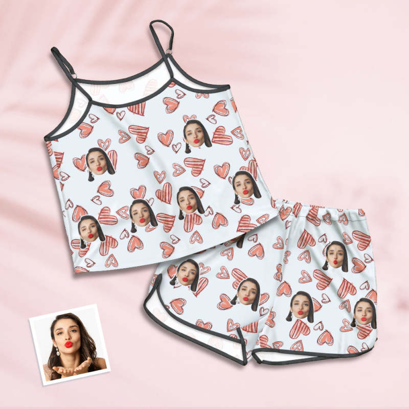 Taille Personnalisée Pyjama Slip Pyjama Short Underwear Set Summer Pyjama - Pink Heart