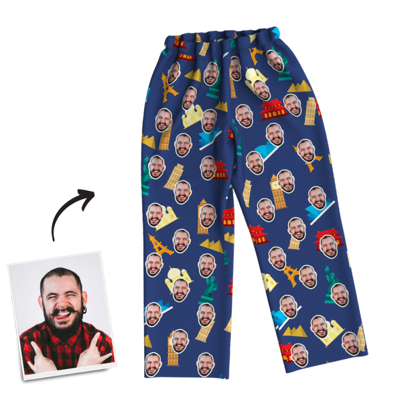 Pantalon de Pyjama Photo Visage Personnalisé Voyage autour du monde, vêtements de nuit