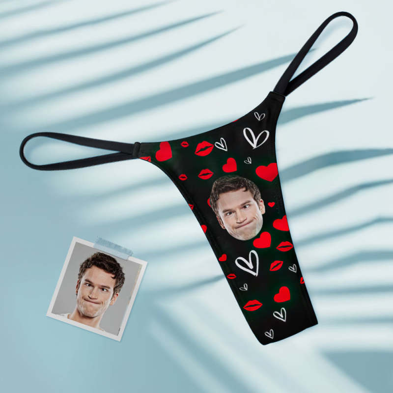 String Tanga Pour Femmes Sexy Visage Personnalisé String Coeur Lèvres Rouges
