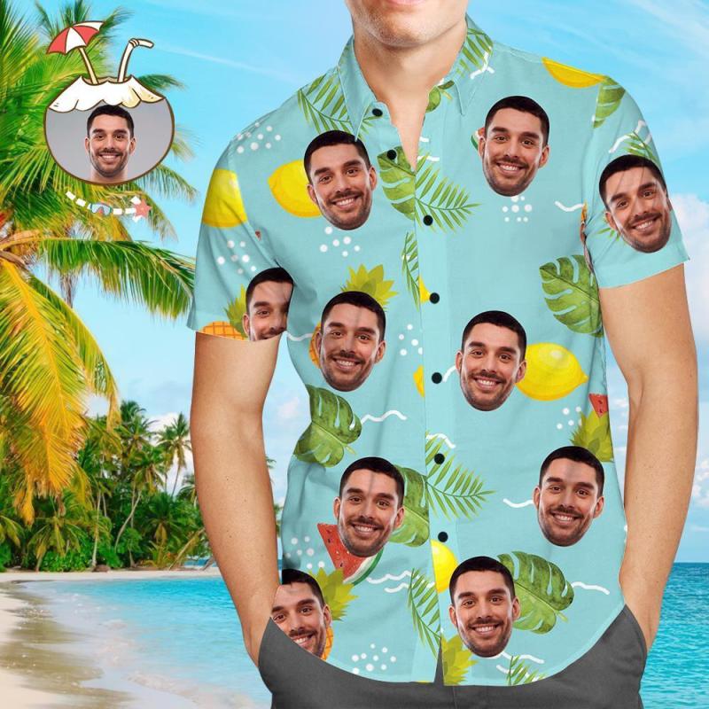 Chemise Visage Personnalisée Photo Personnalisée Chemise Hawaïenne Homme Été