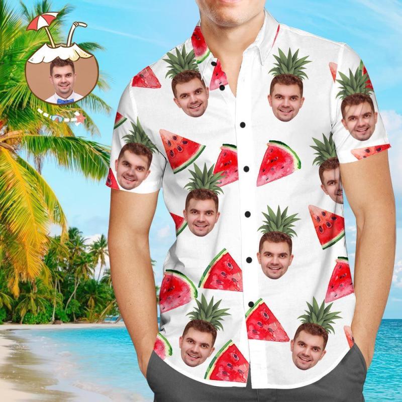 Chemise de visage personnalisée Photo personnalisée Chemise hawaïenne pour hommes Pastèque