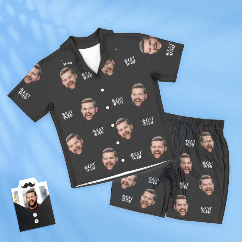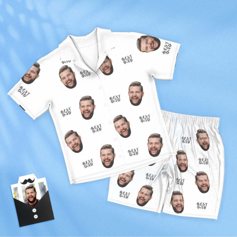 Pyjama À Manches Courtes Visage Personnalisé Vêtements De Nuit Photo Personnalisés Femmes Hommes Pyjamas Meilleurs Cadeaux De Fête Des Pères Papa