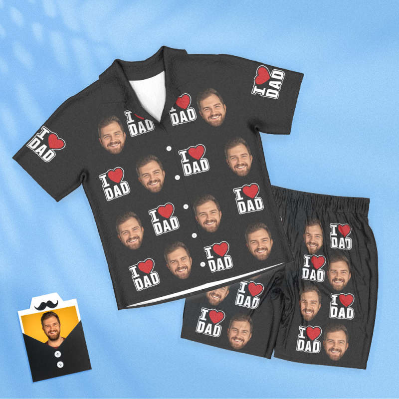 Pyjama À Manches Courtes Visage Personnalisé Vêtements De Nuit Photo Personnalisés Femmes Hommes Pyjamas J'aime Papa Cadeaux De Fête Des Pères