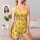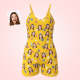 Personnalisé Face Sling Jumpsuit Shorts Personnalisé Photo Jaune Fleurs Pyjama Sans Manches Pour Les Femmes