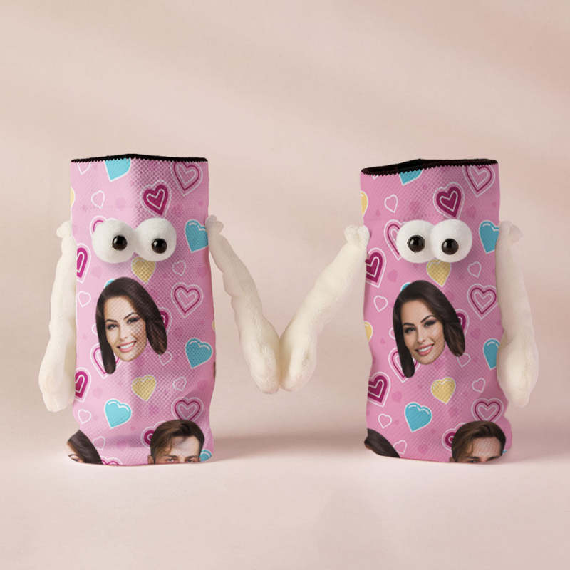 Chaussettes Personnalisées Avec Visage, Poupée Drôle, Chaussettes Roses À Mi-tube, Chaussettes Magnétiques Tenant Les Mains, Cadeaux De Saint-valentin