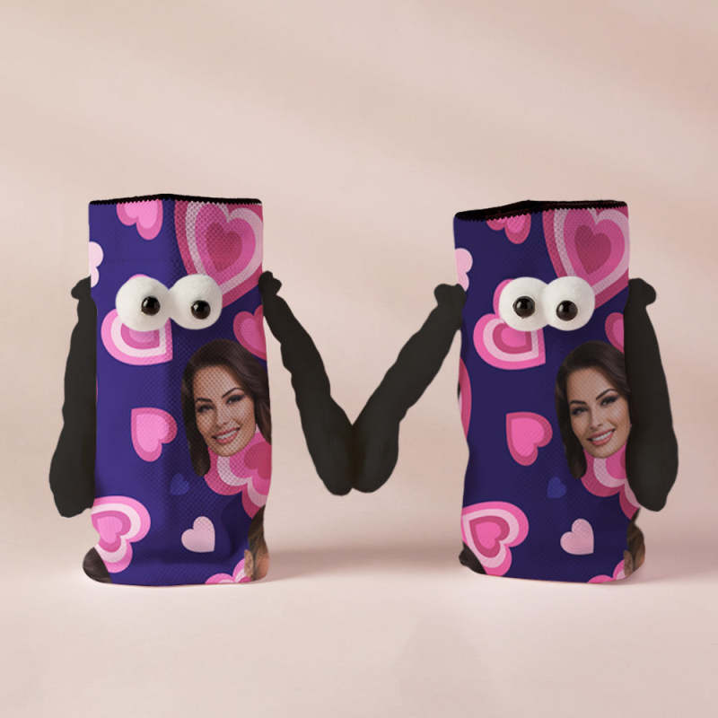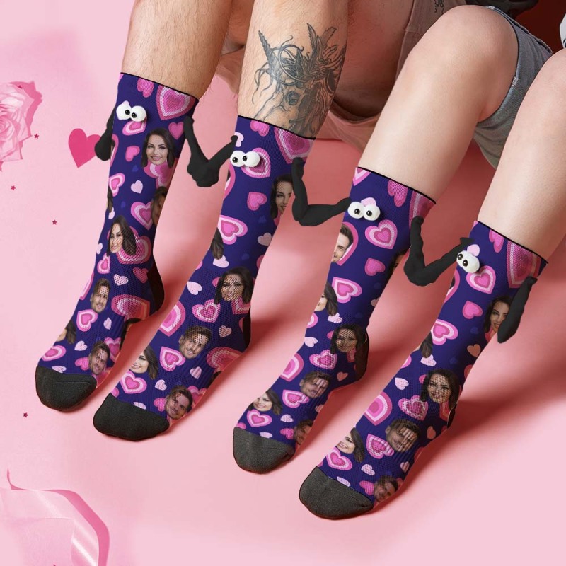 Chaussettes Personnalisées Avec Visage, Poupée Amusante, Tube Moyen, Violettes, Magnétiques, Mains, Cœur Rose, Cadeaux De Saint-valentin
