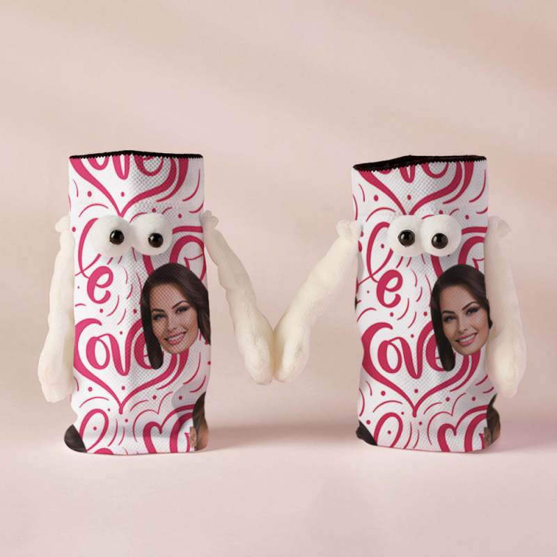 Chaussettes Personnalisées Avec Visage, Poupée Drôle, Chaussettes À Mi-tube, Chaussettes Magnétiques À Tenir Les Mains, Cœur D'amour, Cadeaux De Saint-valentin