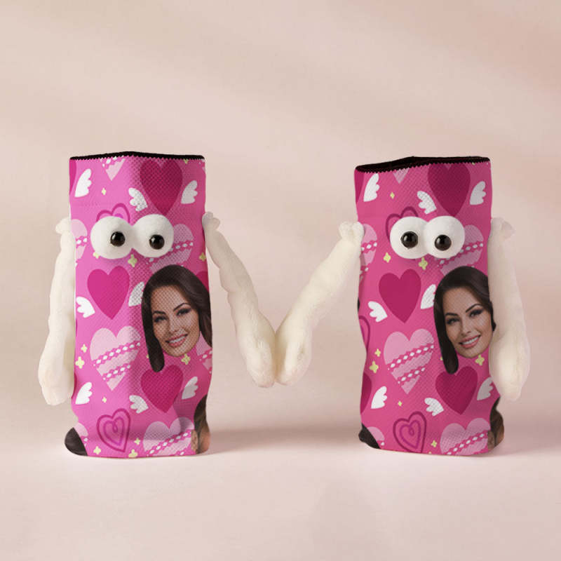 Chaussettes Personnalisées Avec Visage, Poupée Drôle, Chaussettes À Mi-tube, Chaussettes Magnétiques À Tenir Les Mains, Cœur Rose, Cadeaux De Saint-valentin