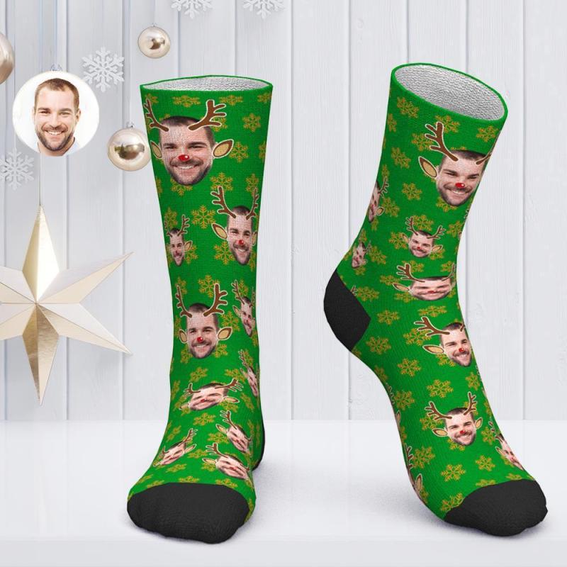 Chaussettes Visage Personnalisées Chaussettes de Noël Personnalisées - ELK