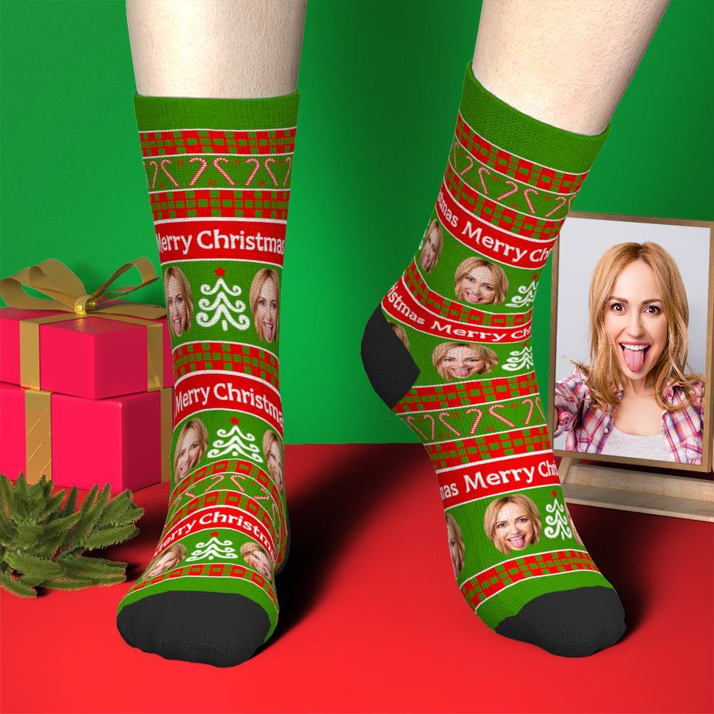 Chaussettes Personnalisées Avec Photo Verte, Cadeau De Noël Pour La Famille