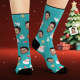 Chaussettes Visage Personnalisées Photo Personnalisée Chaussettes Bleues Bonhomme De Neige Joyeux Noël - MaPhotocaleconFr