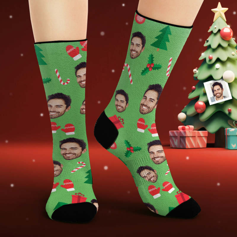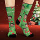 Chaussettes Visage Personnalisées Photo Personnalisée Chaussettes Vertes Bonhomme En Pain D'épices De Noël