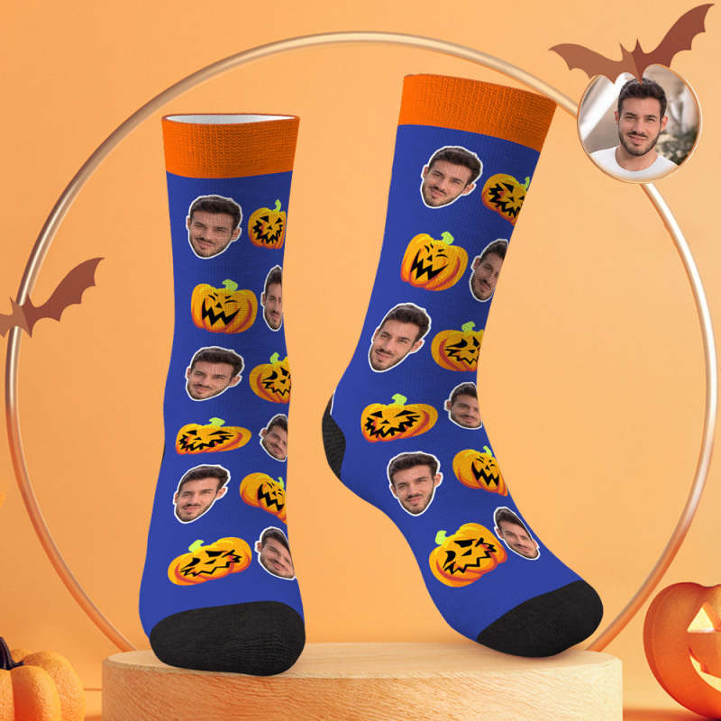 Chaussettes Personnalisées Photos Personnalisées Chaussettes Bleues D'Halloween Citrouille