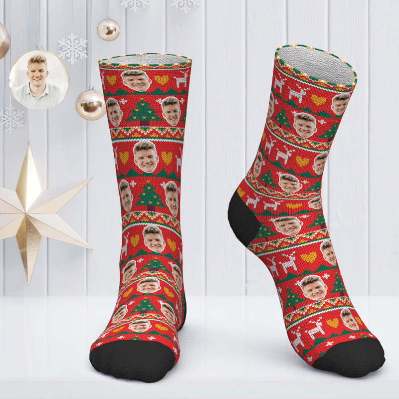 Chaussettes Personnalisées Avec Photo, Cadeau De Noël, Chaussettes De Père Noël, Arbre De Noël – Rouge