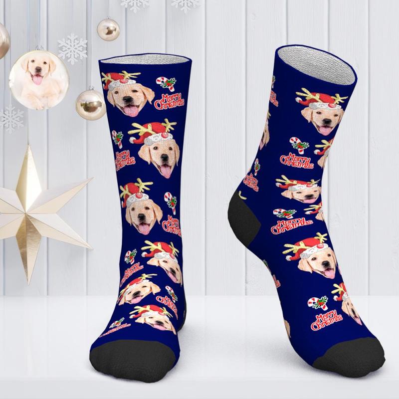 Chaussettes Visage Personnalisées Chaussettes Photo Personnalisées Cadeau De Noël Chaussettes Père Noël - Joyeux Noël Chien Coupé