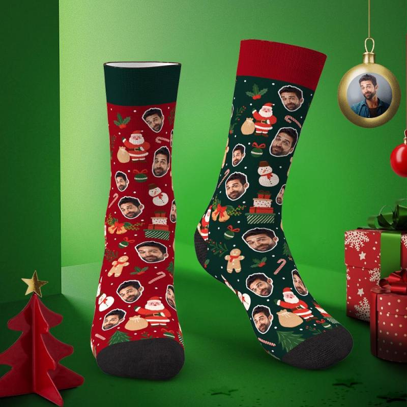Chaussettes Visage Personnalisées Cadeau De Noël Unique - Couleur Différente