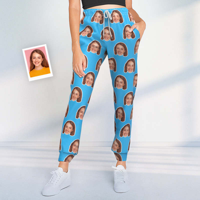 Pantalons De Survêtement Visage Personnalisés Joggers Bleus Unisexes Personnalisés - Cadeau Pour Amoureux