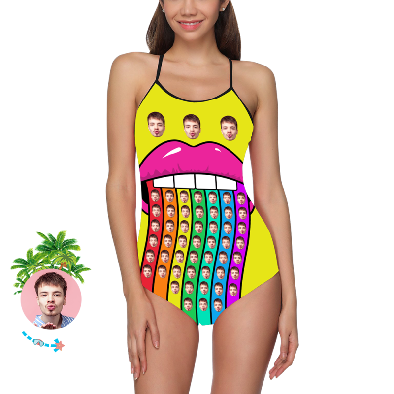 Maillot De Bain Visage Personnalisé Maillot De Bain Une Pièce Pour Femmes Arc-En-Ciel Bouche Vêtements D'Été