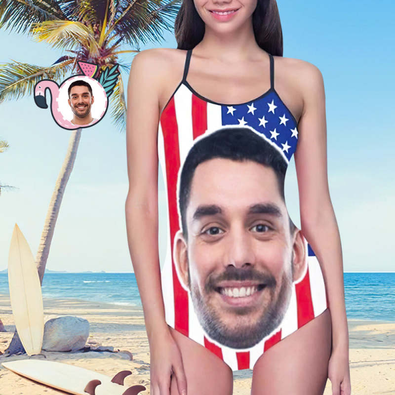 Maillot De Bain Une Pièce Avec Photo Personnalisée Pour Femmes - Drapeau Américain
