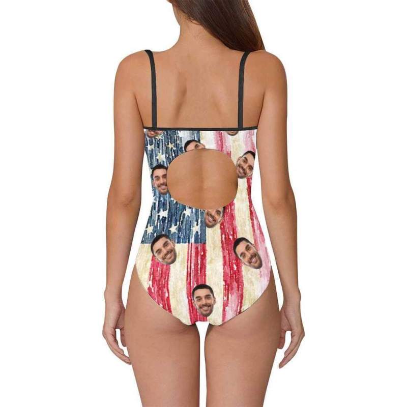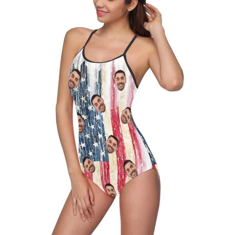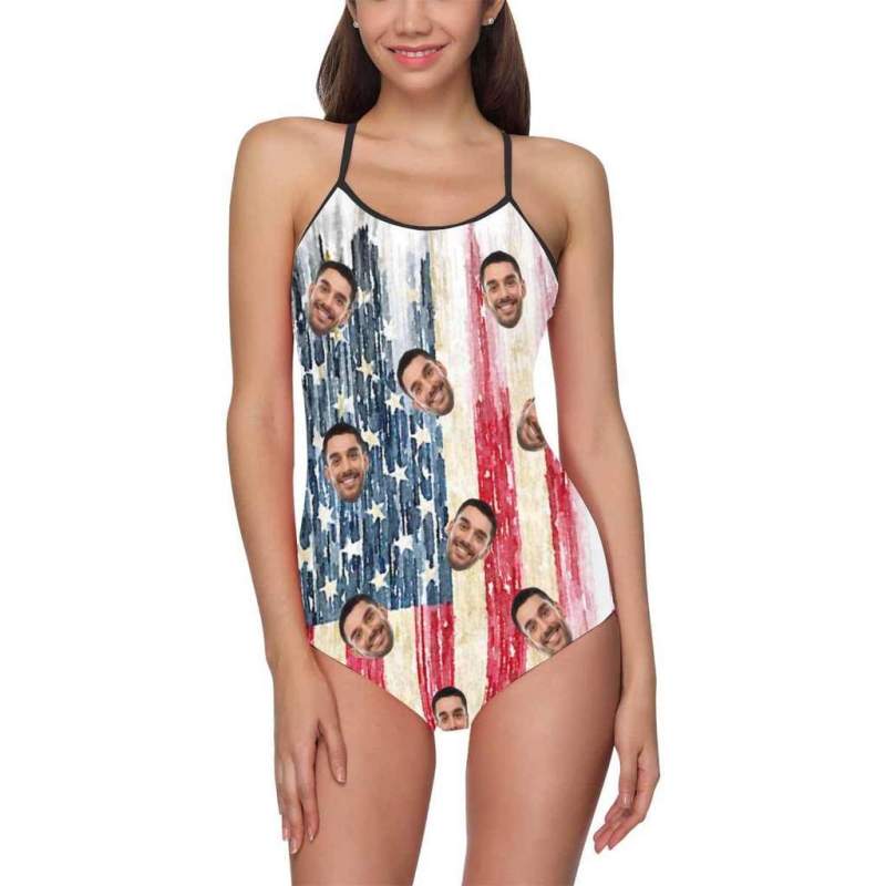 Maillot De Bain Une Pièce Avec Photo Personnalisée Pour Femmes- Artistique Usa Drapeau