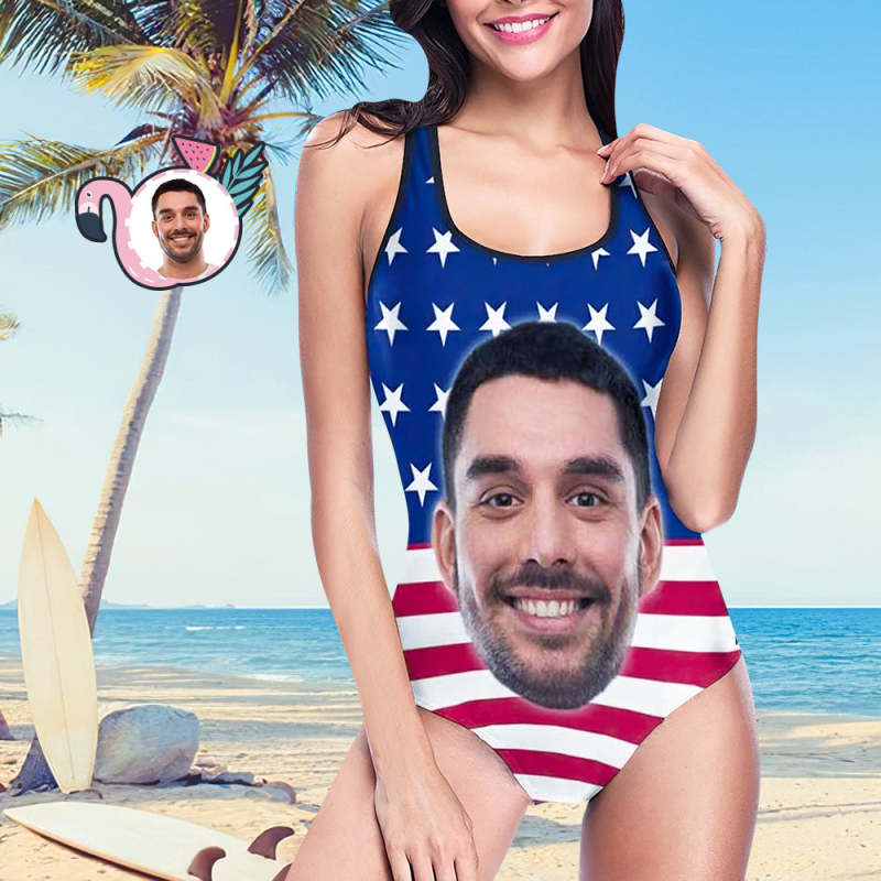 Maillot De Bain Une Pièce Débardeur Photo Personnalisé Pour Femmes - Drapeau Américain