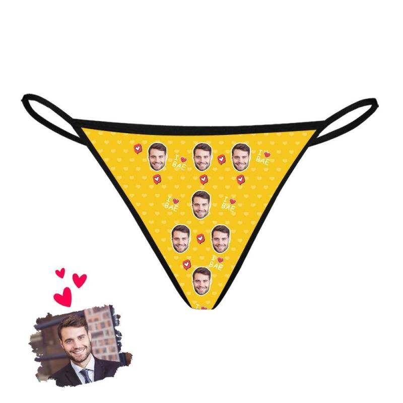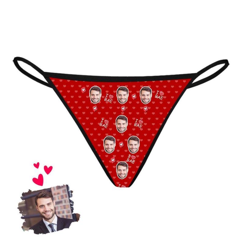 Culottes pour femmes Photo personnalisées String visage personnalisé I LOVE BAE Sexy drôle cadeau personnalisé pour elle