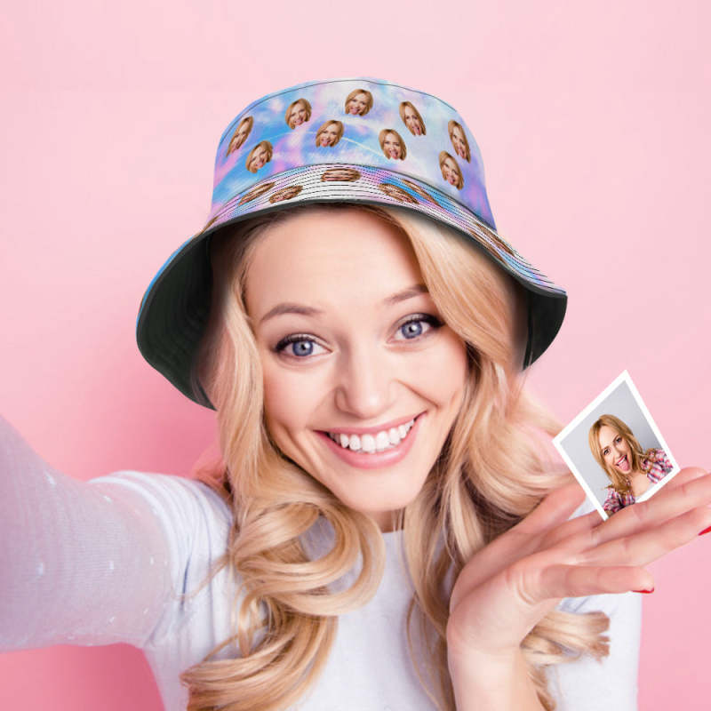 Personnaliser Le Visage Teint De Cravate Chapeau De Baril Unisexe Photo Personnalisation Chapeau D'Été Randonnée Sur La Plage Chapeau Rose Cadeau Pour Amants