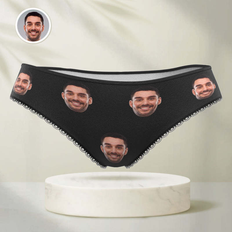 Sous-Vêtements Visage Personnalisés Culottes Culottes Hautes Femme Personnalisées - Noir