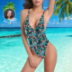 Visage Personnalisé V-Neck Bikini Maillot De Bain Photo Une Pièce Pour Femme Cadeaux Pour Femmes - Feuilles Colorées