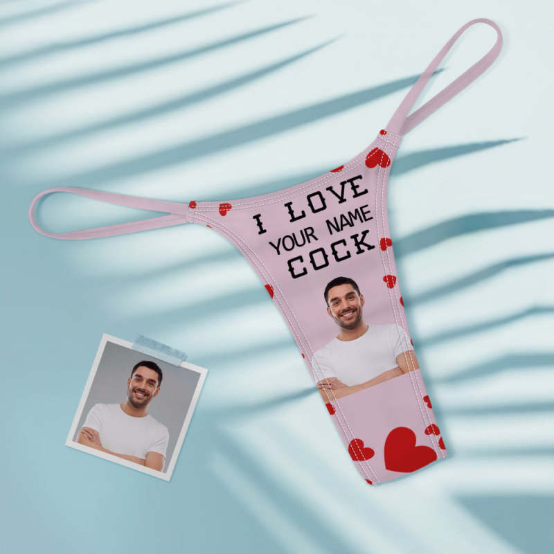 Cadeau De La Saint-Valentin Coloré Tanga Thong Des Femmes De Visage Personnalisé I Love Your Cock