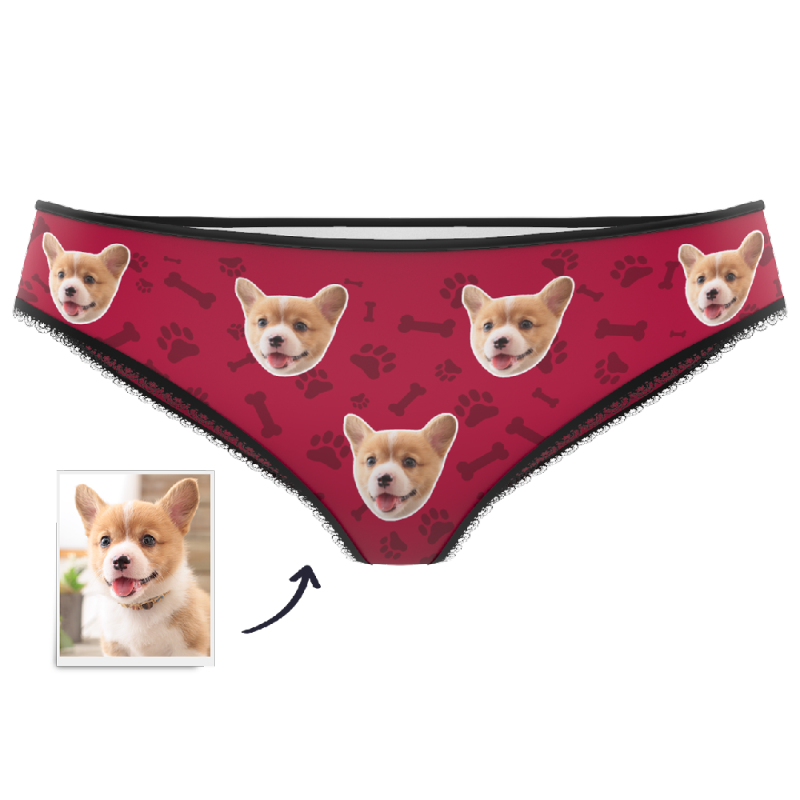 Pantalon Personnalisé Visage Femme - Empreinte de Pas du Chien