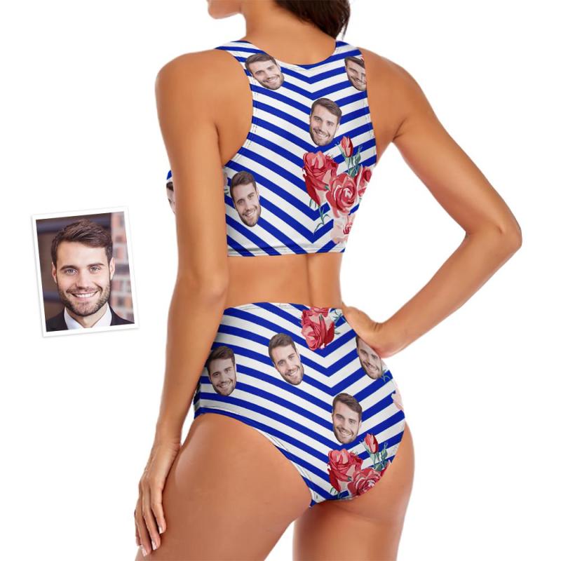 Custom Face Maillot De Bain Deux Pièces Femme Stripe Fleurs