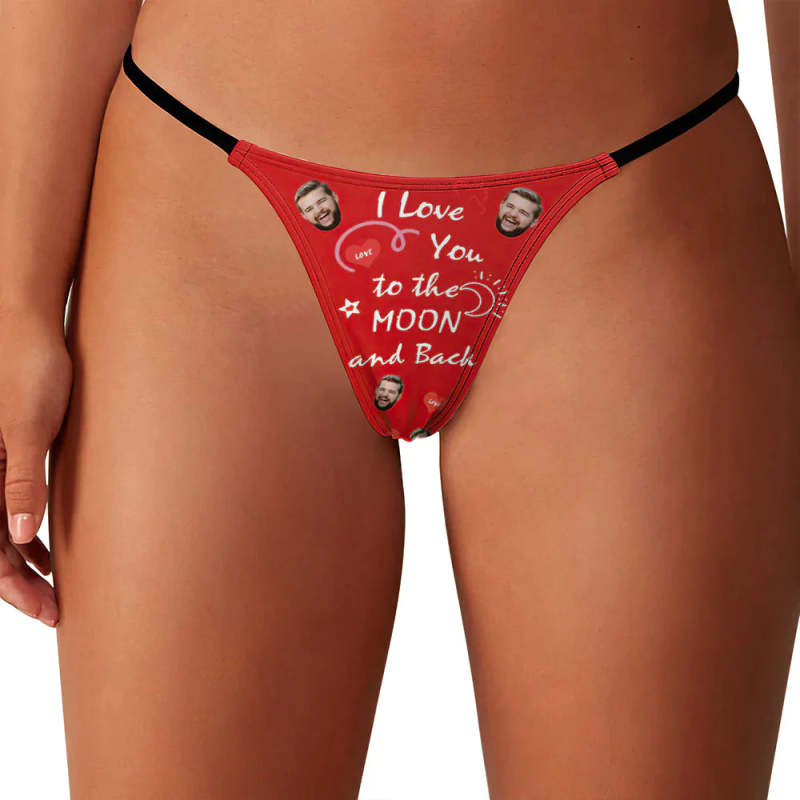 String Tanga Femme Visage Personnalisé Je T'aime Jusqu'à La Lune Et Retour Cadeau Saint Valentin