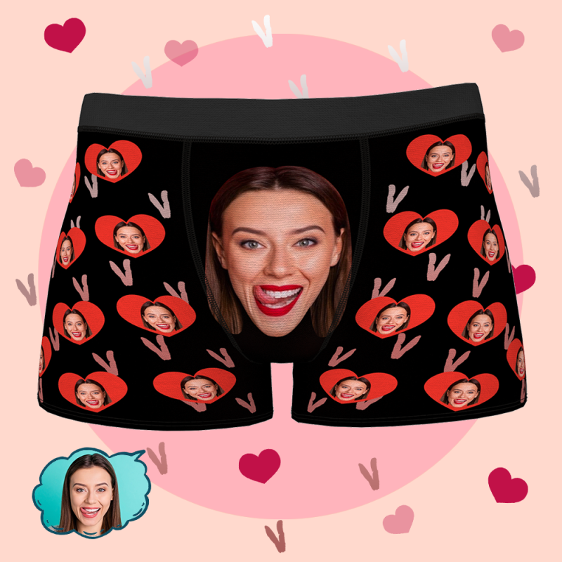 Boxer personnalisé Love Heart Face Boxers photo personnalisés pour hommes Cadeaux drôles personnalisés pour lui