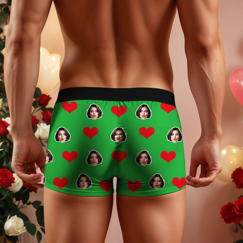 Boxer Personnalisé Pour Hommes, Boxer Cœur Rouge, Slip Personnalisé Pour Visage Blanc, Sous-vêtements Pour La Saint-valentin, Cadeau