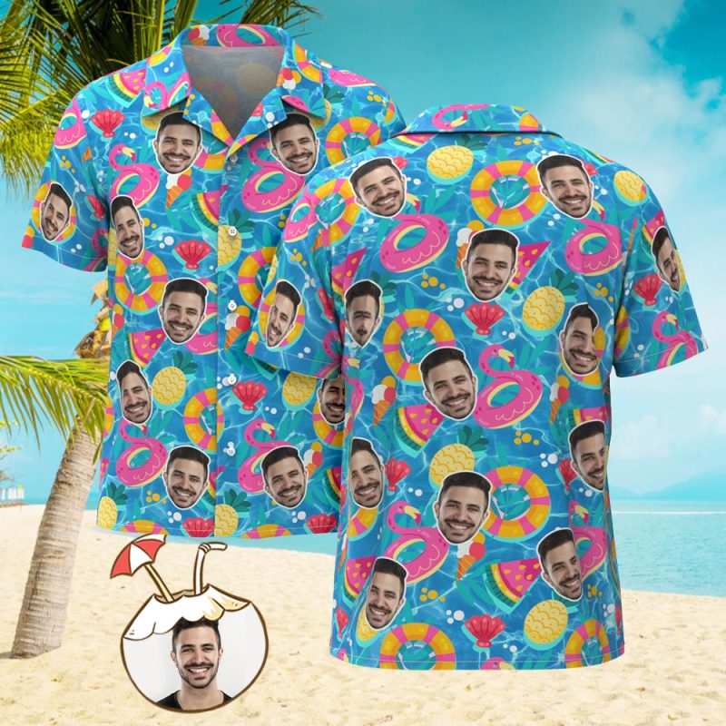 Chemise Hawaïenne Personnalisée Pour Hommes, Avec Visage Imprimé Sur Toute La Surface, Flotteurs De Piscine