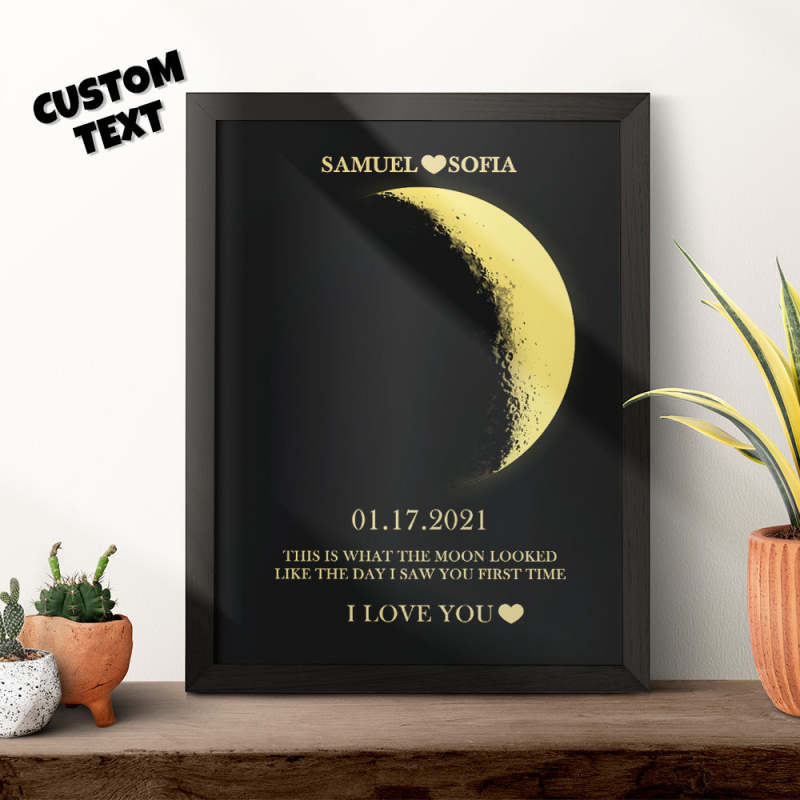 Saisissez votre date de naissance ou une autre date et nous découvrirons pour vous ce que c'est que de vivre sur la Lune.Dimensions du cadre : 7,2 x 9,2 pouces = 18,2 x 23,3 cm