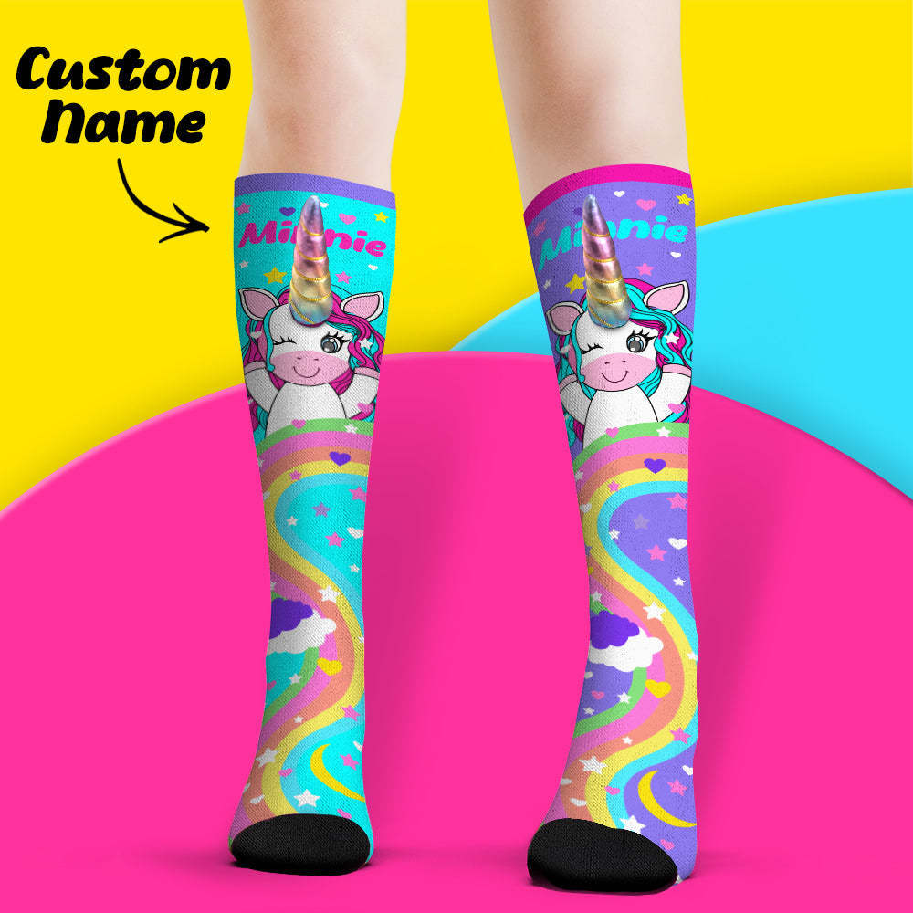 Chaussettes Personnalisées Avec Nom, Chaussettes Hautes Au Genou, Chaussettes De Dessin Animé En Corne De Licorne 3d