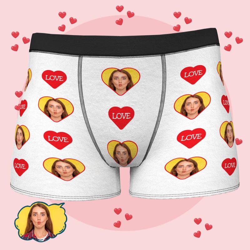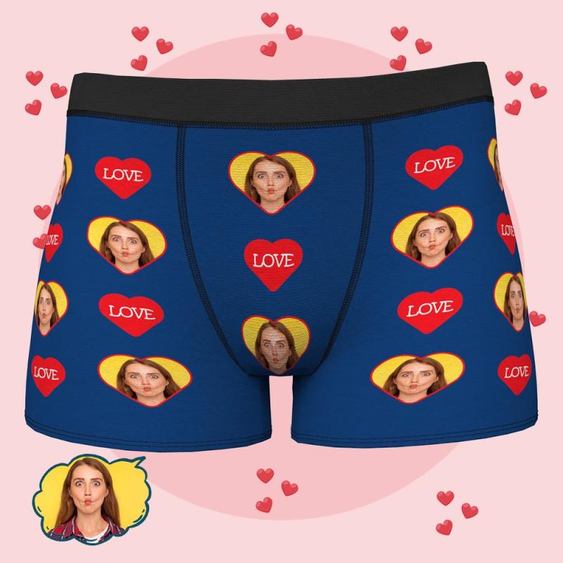 cadeau de boxeurs de visage drôle personnalisé personnalisé pour les hommes mari petit ami sous-vêtements coeur d'amour