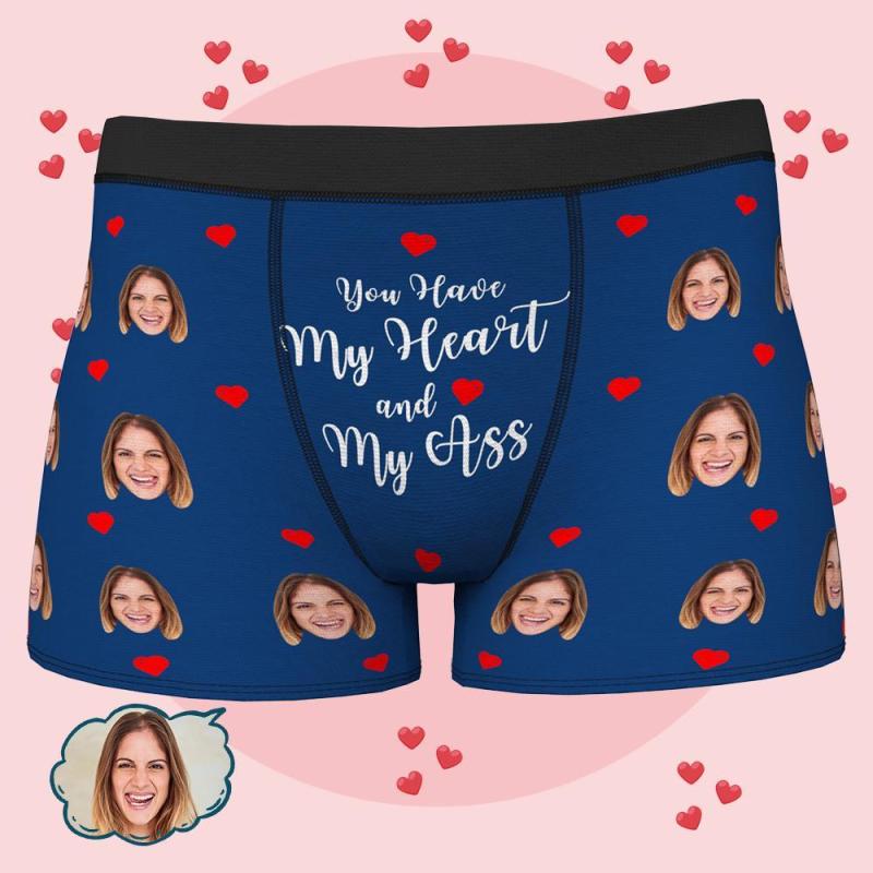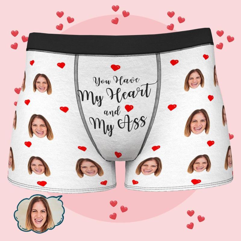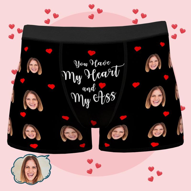 Boxers Visage Personnalisés Cadeau de Sous-Vêtements Photo Personnalisés pour Hommes - tu as mon coeur et mon baiser