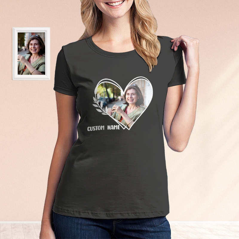 Photo Personnalisée Et Nom Chemise Coeur T-shirt Photo Personnalisé Cadeau Pour Maman