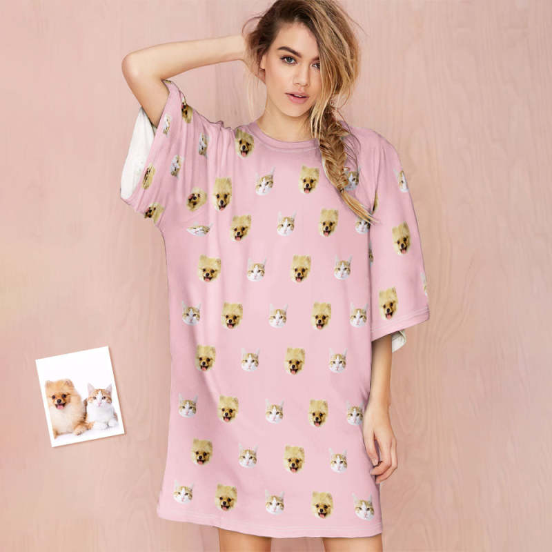 Chemise De Nuit Avec Visage Avec Photo Personnalisée, Animal De Compagnie Mignon, Cadeaux Créatifs Pour La Maison