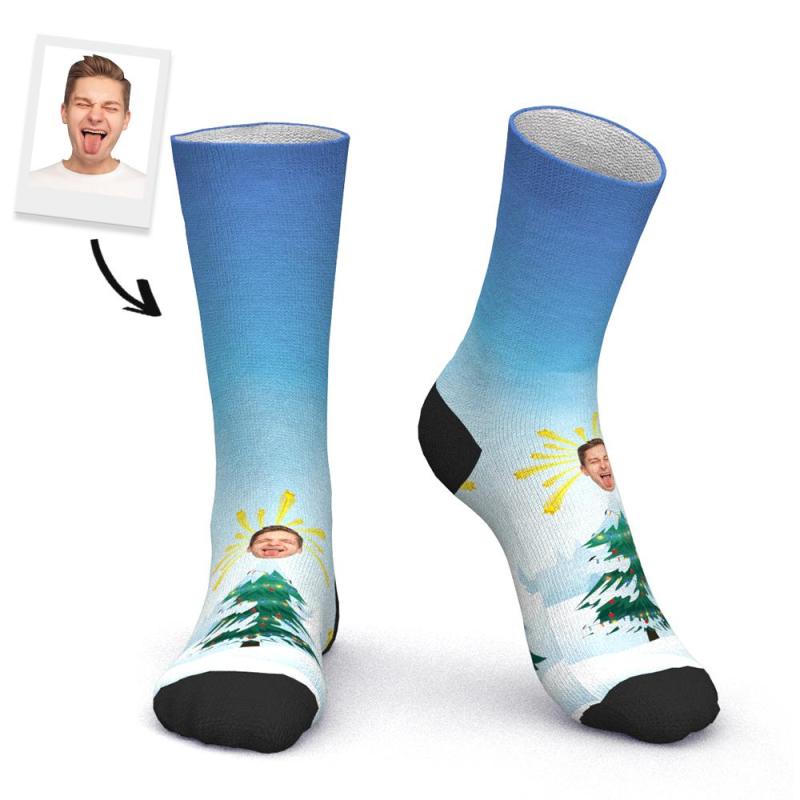 Chaussettes De Visage Avec Photo Personnalisée, Cadeaux Imprimés Avec Arbre De Noël En Plein Air Et Neige - MaPhotocaleconFr Chaussettes De Visage Avec Photo Personnalisée, Cadeaux Imprimés Avec Arbre De Noël En Plein Air Et Neige - MaPhotocaleconFr