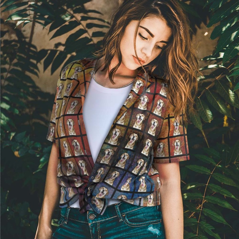 Chemise Hawaïenne Photo Personnalisée Pour Femmes Chemise Photo Personnalisée Pour Animaux De Compagnie Motif Portrait Carré